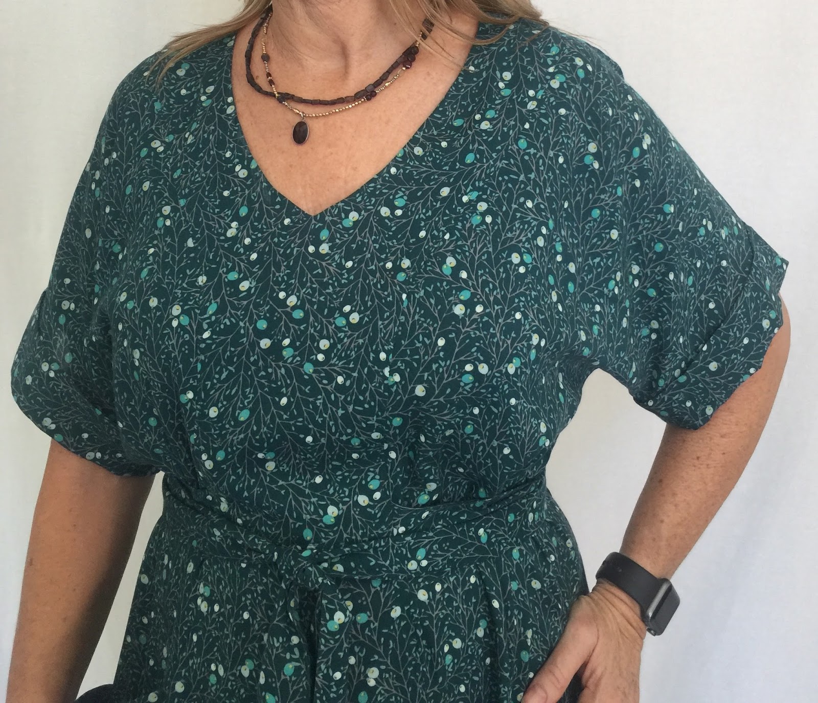 We chose a very soft rayon print for this dress, and as Laurel would say, "making it that much more exciting to sew!" She's kidding of course, as softer fabrics take a little more time to work with, but making this dress out of a rayon or silk fabric is SO worth it.